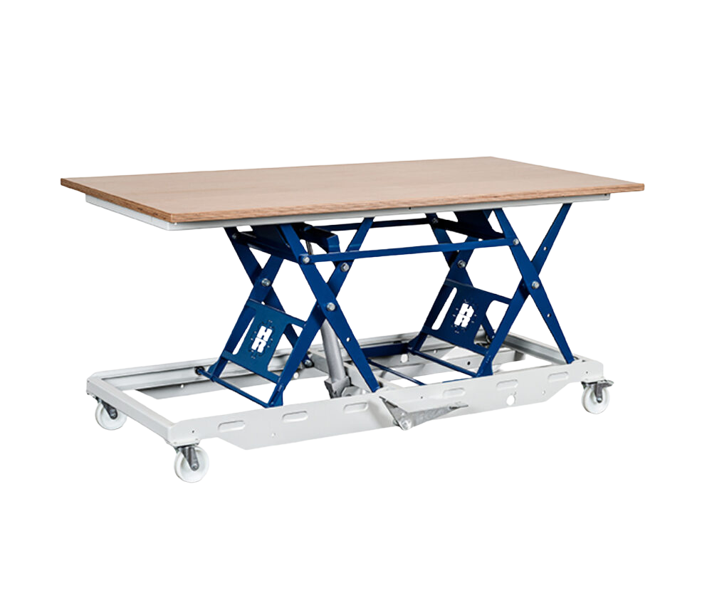 Viele Tischlereien und Holzwerkstätten arbeiten noch mit festen Arbeitshöhen oder improvisierten Lösungen beim Handling großer Werkstücke. Ein professioneller Hubtisch für die Holzwerkstatt sorgt für: